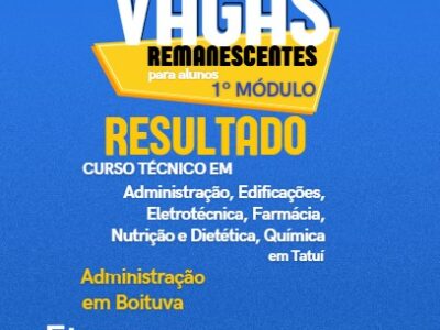 A DIRETORA DA ESCOLA TÉCNICA ESTADUAL SALES GOMES FAZ SABER QUE NO PERÍODO DE 04/08/2025 a 18/08/2025, ESTARÃO ABERTAS AS INSCRIÇÕES PARA OS PROCESSOS SELETIVOS SIMPLIFICADO PARA FORMAÇÃO DE CADASTRO RESERVA DE DOCENTES NOS COMPONENTES DOS SEGUINTES CURSOS: